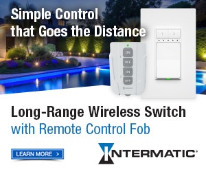 | | Sponsored | | Enhance outdoor spaces with the new Long-Range Wireless Switch from Intermatic. Our simple control makes it easy to turn landscape lights, pool lighting, and other outdoor lighting loads ON and OFF with the push of a button. The wireless solution offers built-in 915 MHz wireless technology and an impressive range of 400 ft, saving homeowners the hassle of going outside to manually flip light switches. |