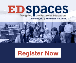 | | Advertisement | EDspaces is the event where education leaders - your customers - gather for collaboration and sharing of ideas to create spaces where students and teachers thrive. Come share your voice for design and innovation that impacts the lives of the next generation. |