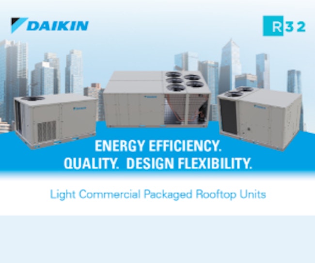 Sponsored | | | | Daikin's Light Commercial Packaged Rooftop Units are designed to meet the unique needs of building owners and tenants. Our 3- to 25-ton models, in 3 cabinet sizes, provide innovative HVAC technology and designs for low installation and operation costs with reliable performance, making them ideal for both new construction and retrofit projects. |